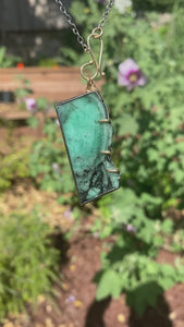 – Sold OutStriations ranging from crystalline silver to deep teal green, a freeform tourmaline is set in 22K yellow gold bezel over Sterling with a single 18K yellow gold prong. The necklace...