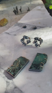 Seedpod Wreath Charmholder Earrings with Emerald Slices
